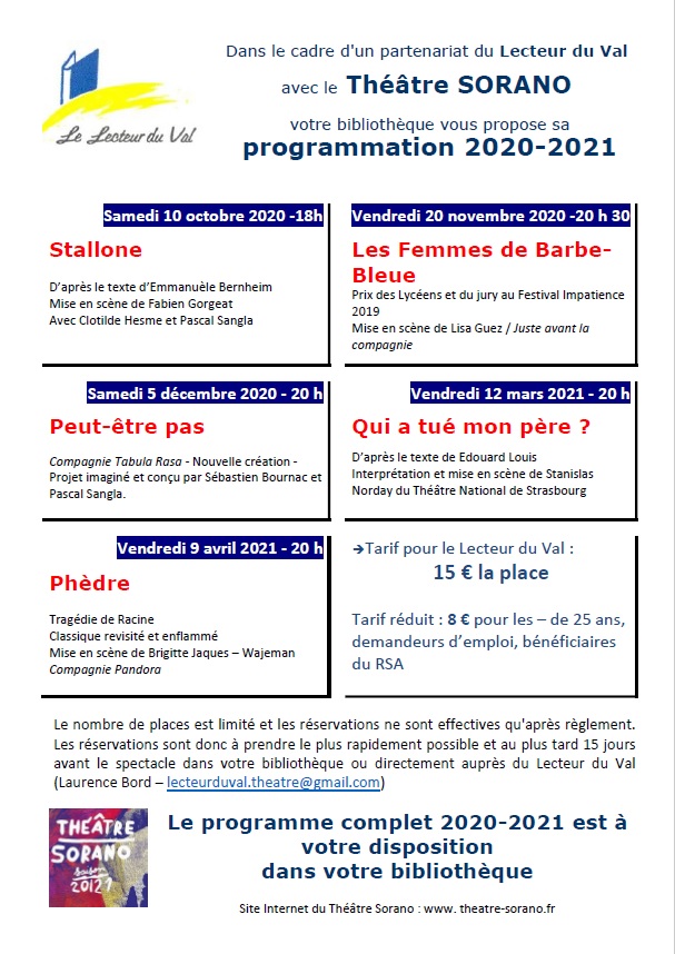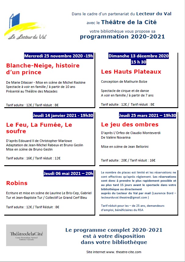 sélection de sept spectacles tout public peut être proposée, à tarifs préférentiels, et hors de toute